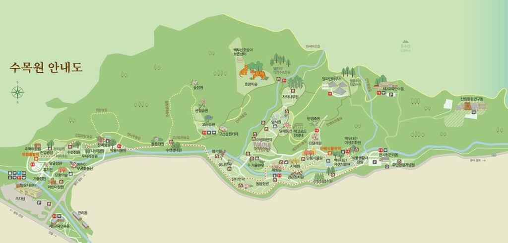 호랑이숲으로 유명한 국립백두대간수목원입니다. 1) 어린이 정원, 모험의 숲 등 17개 커뮤니티, 2) 꽃나무원, 잔디 언덕 등 13개 주제 정원, 3) 호랑이숲 등 9개 산림보전 테마 등으로 국내에서 손꼽히는 수목원입니다.